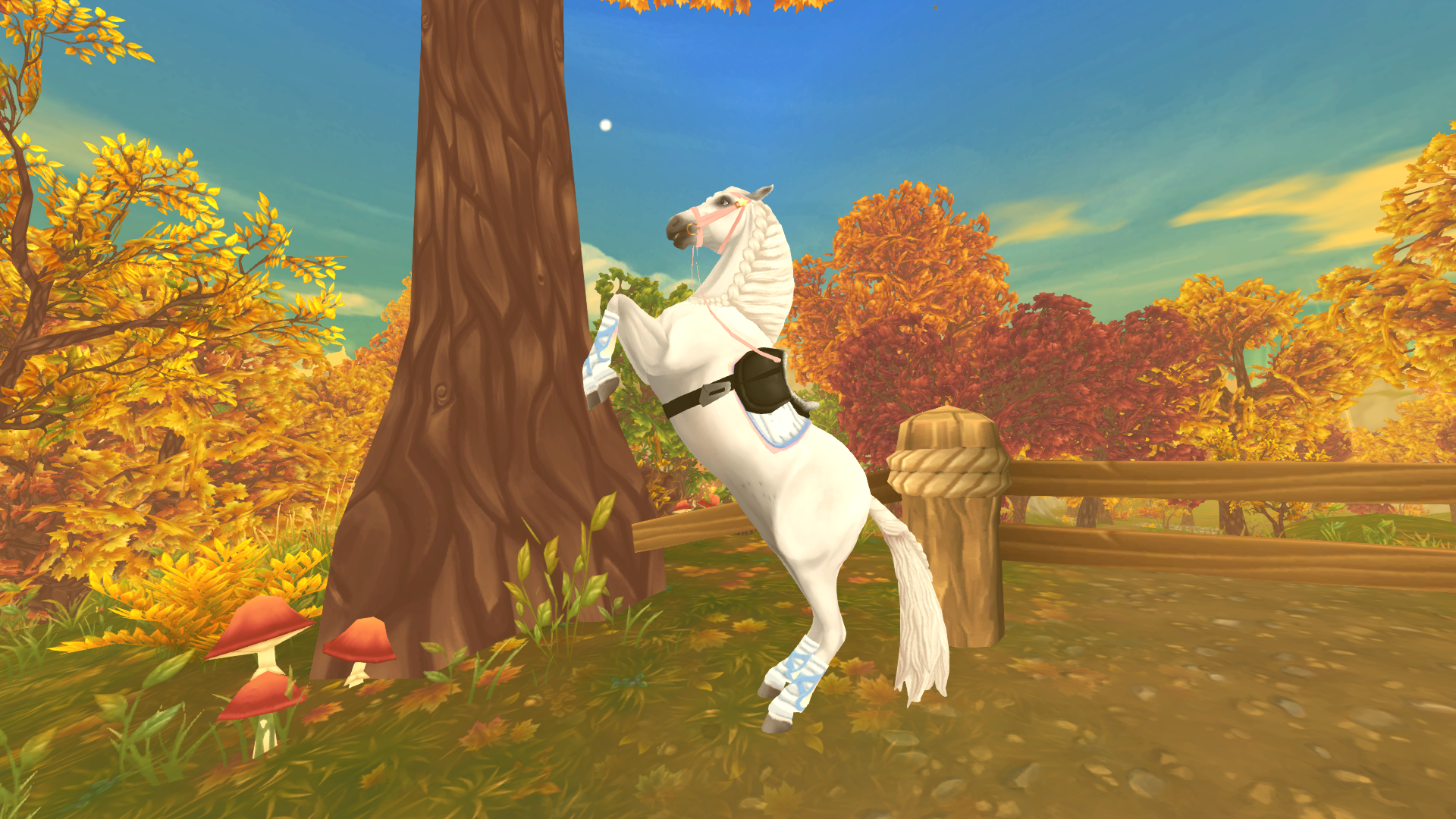 Cluboutfit (Pferd): -schwarzer Sportsattel -Unistria Zaumzeug-Dawn -Unistria Satteldecke-Eclipse -Unistria Wickelgamaschen-Eclipse