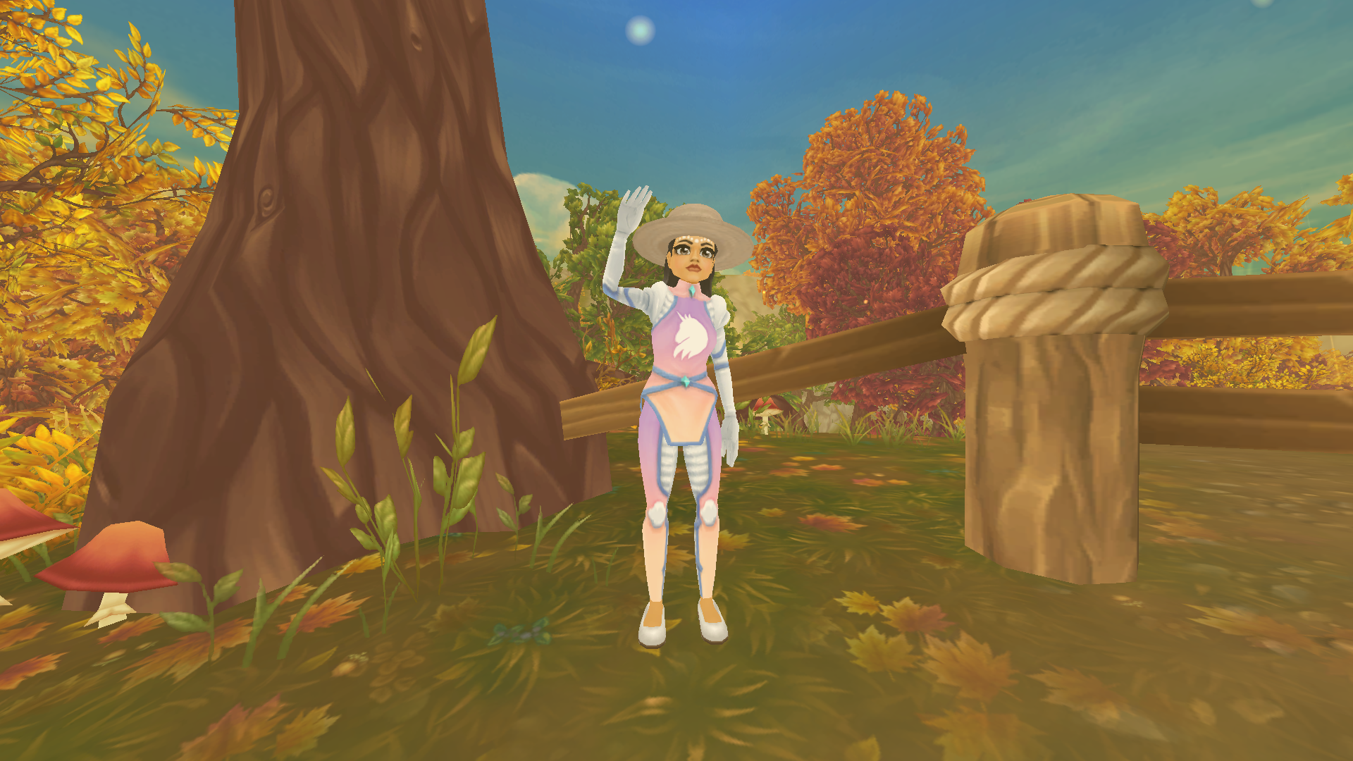 Cluboutfit (Mensch): -Sonnenhut der Blumenförsterin -Unistria Rüstung-Dawn -Unistria Leggins-Dawn -Koppelschuhe
